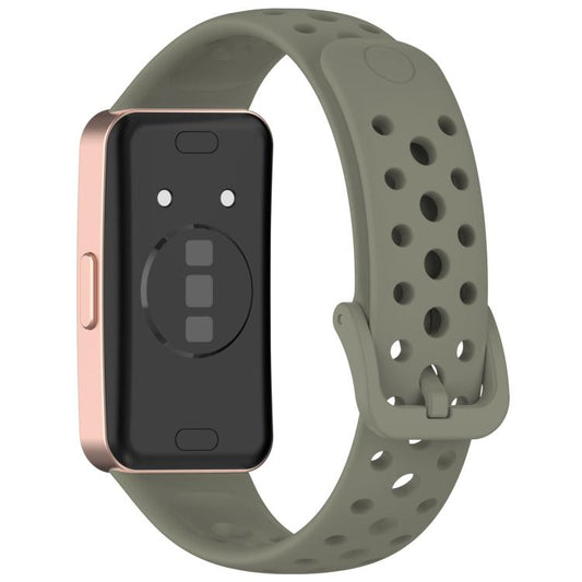 For Huawei Band 10 / 9 / 8 xDfind Hole Style Breathable Silicone Watch Band(Grey Green)