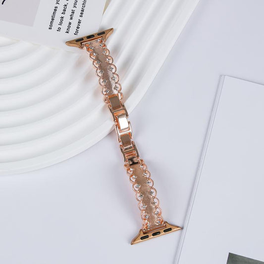 For Apple Watch 46mm / 49mm / 45mm / 44mm Lace Edged Diamond Alloy Metal Watch Band(Rose Gold)