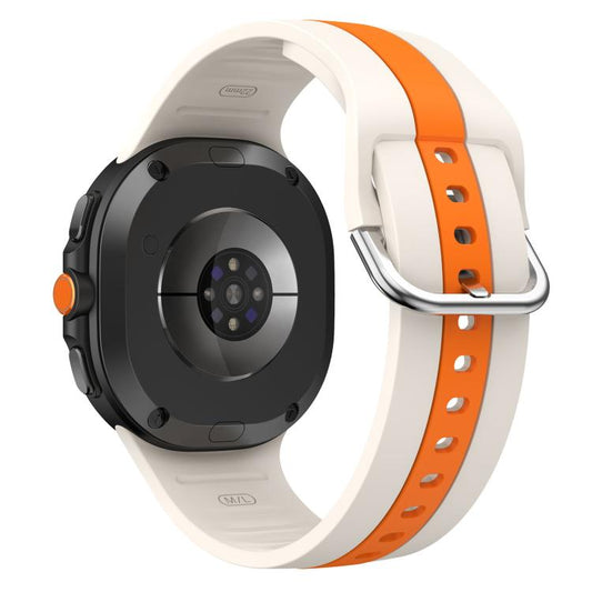For Samsung Galaxy Watch8 / Watch8 Classic Silver Buckle Vertical Stripe Two Color Silicone Watch Band(Starlight Orange)