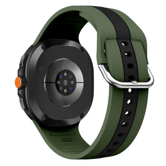 For Samsung Galaxy Watch8 / Watch8 Classic Silver Buckle Vertical Stripe Two Color Silicone Watch Band(Army Green Black)