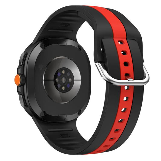 For Samsung Galaxy Watch8 / Watch8 Classic Silver Buckle Vertical Stripe Two Color Silicone Watch Band(Black Red)