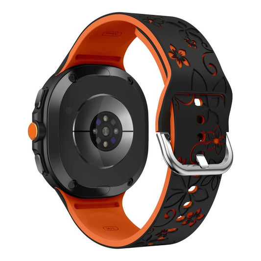 For Samsung Galaxy Watch8 / Watch8 Classic Dual Color Engraved Silicone Watch Band(Black Orange)