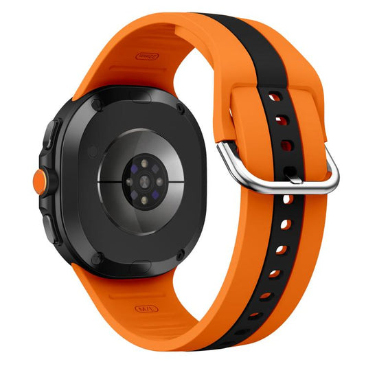 For Samsung Galaxy Watch8 / Watch8 Classic Silver Buckle Vertical Stripe Two Color Silicone Watch Band(Orange Black)