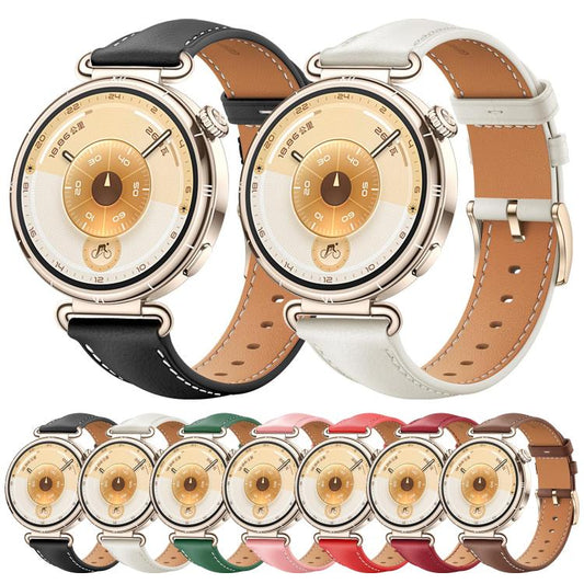 For Huawei Watch GT 6 41mm Soft Leather Watch Band Gold Buckle(White)