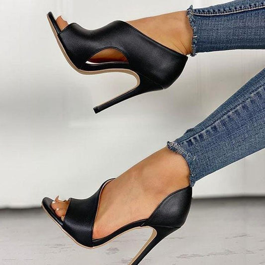 BEI WRH Fish Mouth Sandals Female Stiletto Heels Hollow Women Shoes, Size:40(Black)