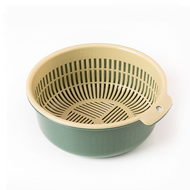 Double-Layer Hollow Fruit & Vegetable Drain Basket Household Plastic Vegetable Washing Basket, Size:Large(Green)