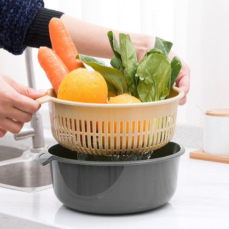 Double-Layer Hollow Fruit & Vegetable Drain Basket Household Plastic Vegetable Washing Basket, Size:Small(Gray)