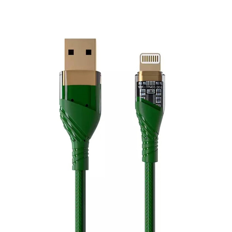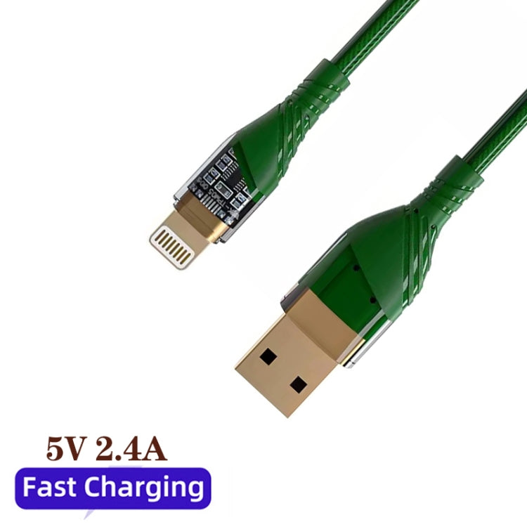 2.4A USB to 8 Pin Transparent Fast Charging Data Cable, Length: 1m(Green)