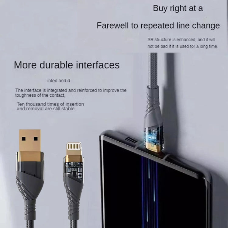 2pcs 2.4A USB to 8 Pin Transparent Fast Charging Data Cable, Length: 1m(Black)