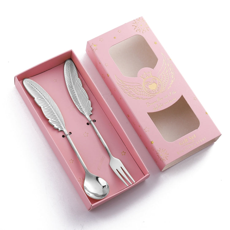 Cuillère à plumes en acier inoxydable 304, vaisselle littéraire, style : 2 en 1, couleur vraie - boîte rose