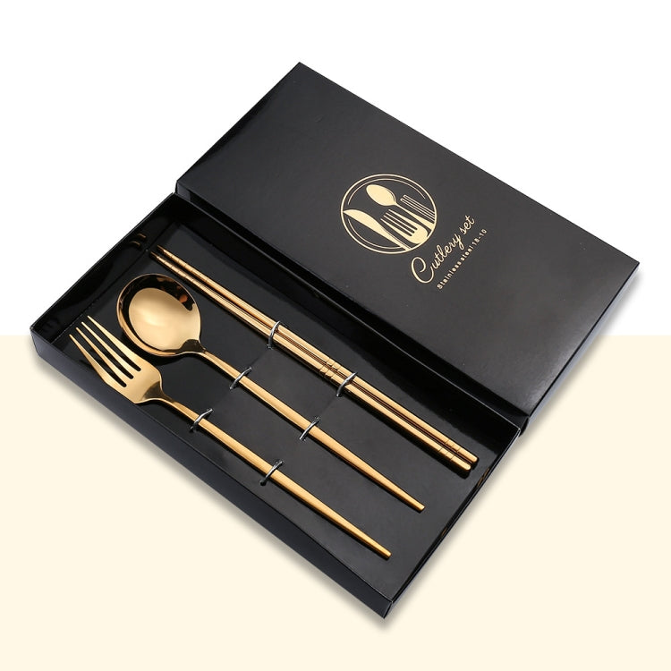 3pcs /Pack Stainless Steel Glossy Mirror Flatware Gift Set, Style: With Chopsticks (Titanium)