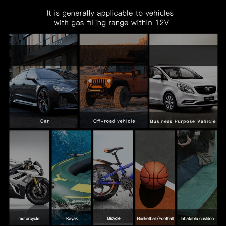 1. Fonctions : pompe à air automobile, détection d'affichage numérique de la pression des pneus, alimentation de démarrage d'urgence automobile, lumière SOS, lampe de poche, banque de charge