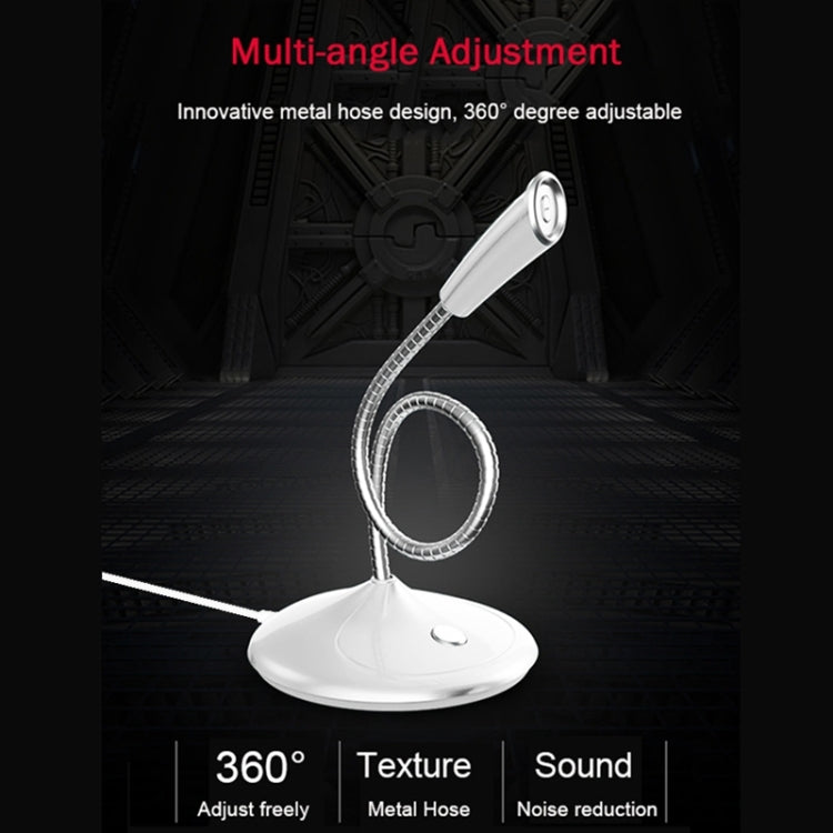 Microphone audio filaire USB réglable à col de cygne BK pour bureau, carte son intégrée, compatible avec PC / Mac pour diffusion en direct, spectacle, KTV, etc. (blanc)