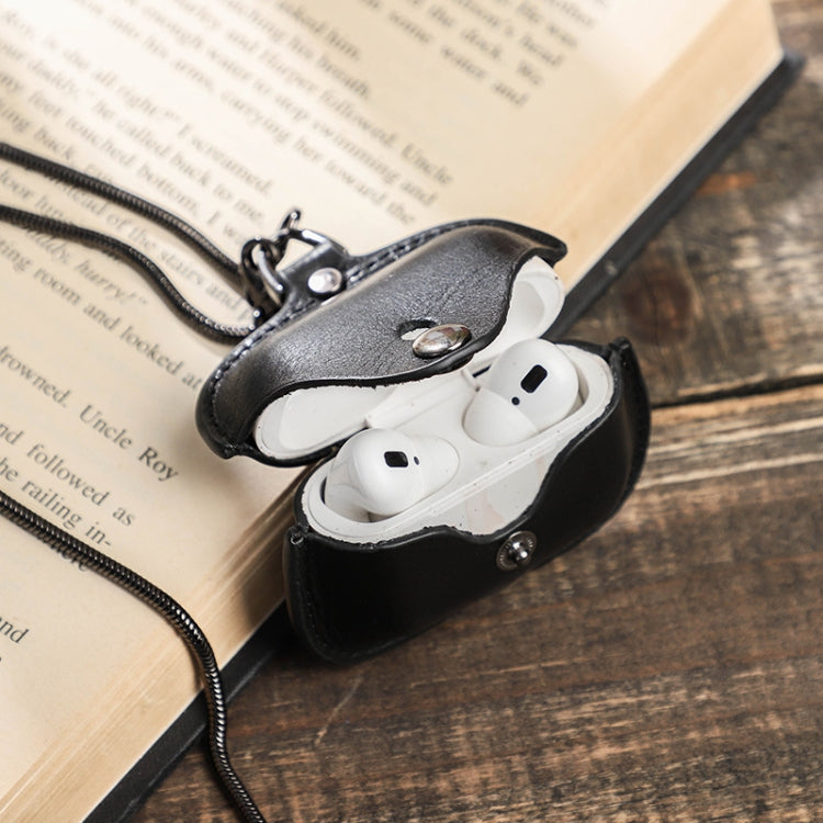 CONTACTS FAMILY CF1122A Étui de protection en cuir pour AirPods Pro avec collier pour AirPods Pro (vert)