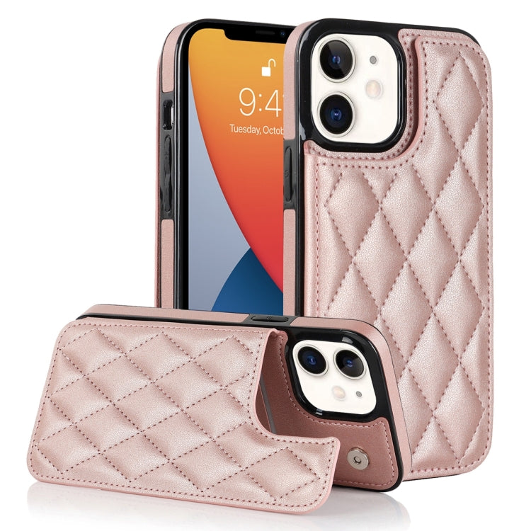Pour iPhone 12 mini Étui de téléphone en cuir PU à double boucle rhombique (or rose)