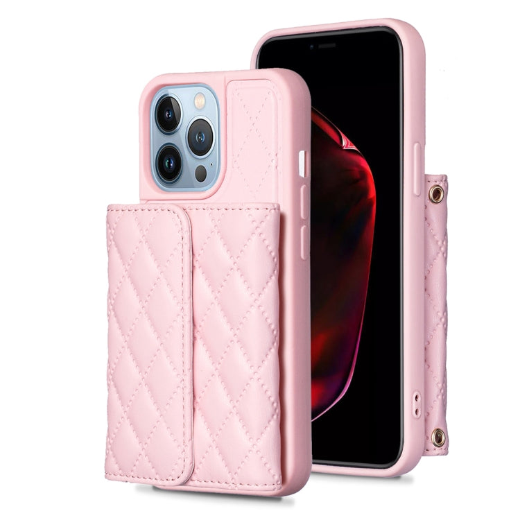 Pour iPhone 13 Pro Max Étui portefeuille horizontal en cuir rhombique (rose)