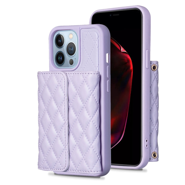 Pour iPhone 13 Pro Max Étui portefeuille horizontal en cuir rhombique (violet)