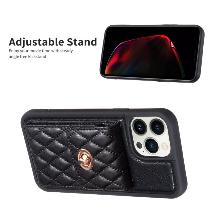 Pour iPhone 13 Pro Max Étui portefeuille vertical en cuir rhombique avec boucle en métal (noir)
