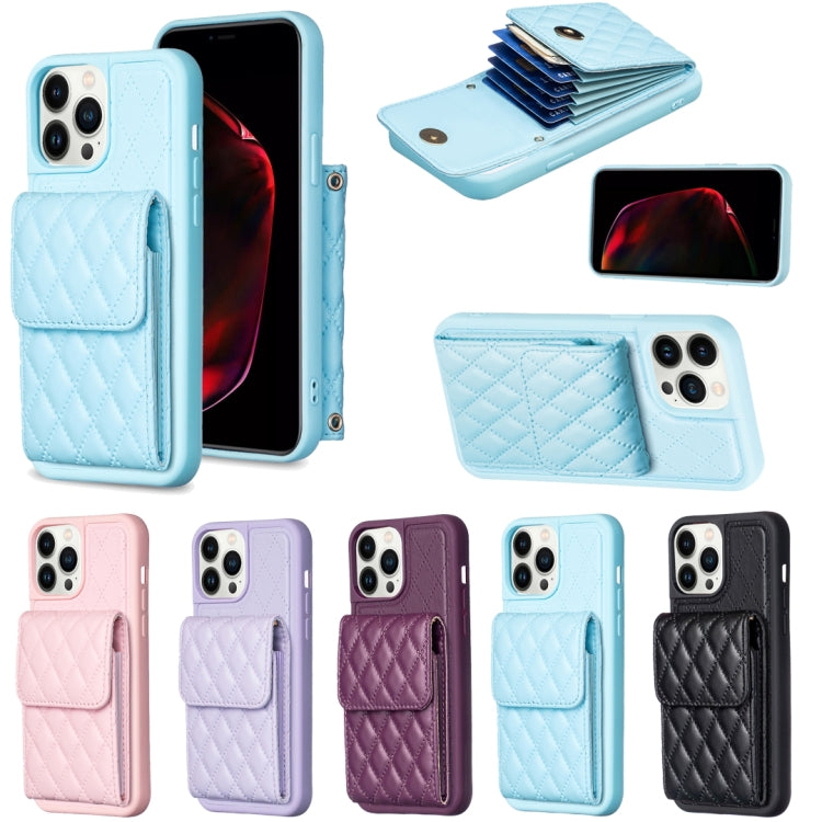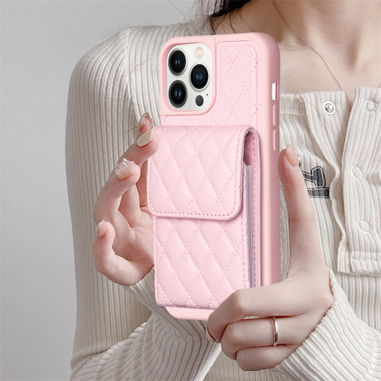 Pour iPhone 13 Pro Max Étui portefeuille vertical en cuir rhombique (rose)