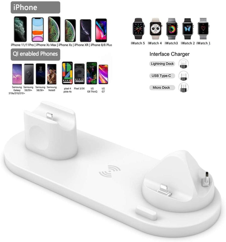 HQ-UD15-upgraded 6 in 1 Wireless Charger For iPhone, Apple Watch, AirPods and Other Android Phones(White)