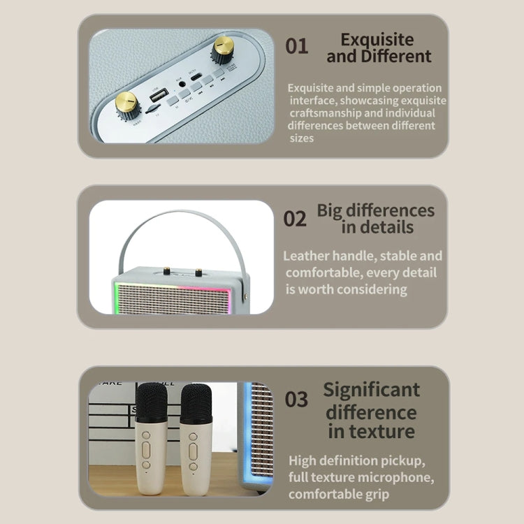 Leather Colorful Light Effect Karaoke Audio Retro Outdoor Bluetooth Speaker, Style: Dual-microphone(Gray)