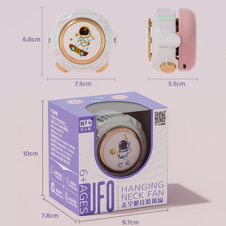 MD666-3 Mini ventilateur de cou portable sans lame à suspendre en forme de capsule spatiale de dessin animé (bleu)