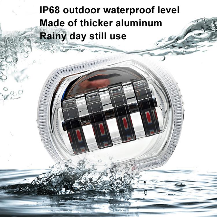 Motorcycle Electric Vehicle General Modification LED Headlight 4 Beads Double Lens Lamps, Style: Ice Blue Aperture+Red Devil Eye