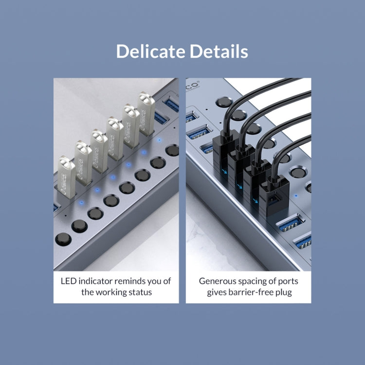 ORICO BT2U3-16AB-GY-BP 16 Ports USB 3.0 HUB with Individual Switches(US Plug)