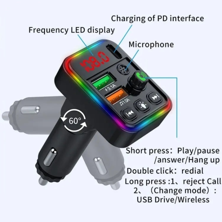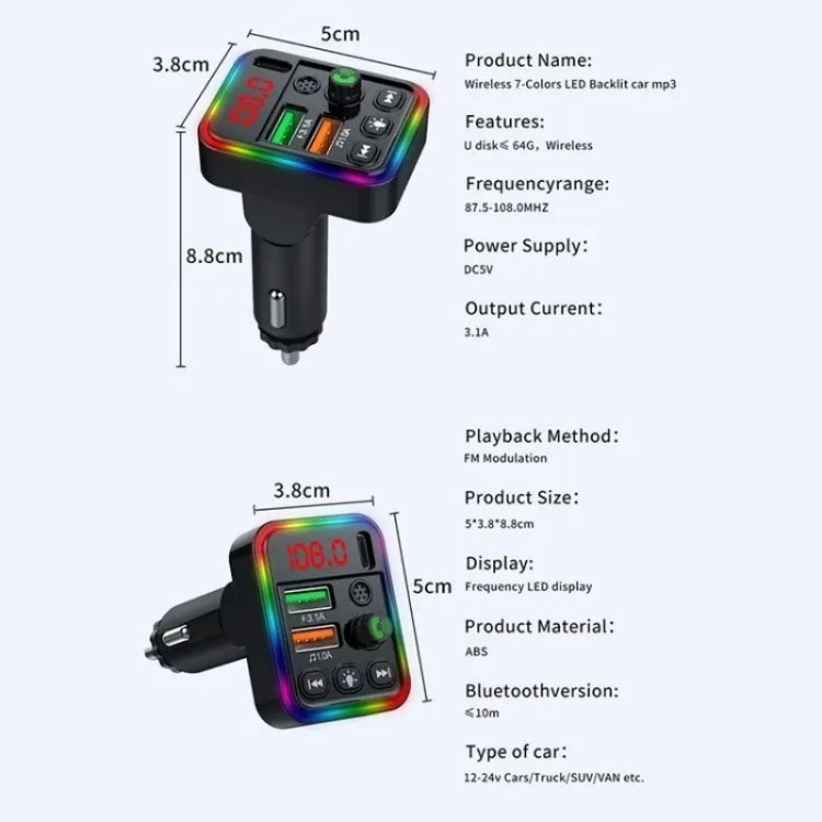 P19 Support U Disk Wireless 7-Colors LED Backlit Car MP3 Hands-Free Bluetooth Calling Car Audio Charger