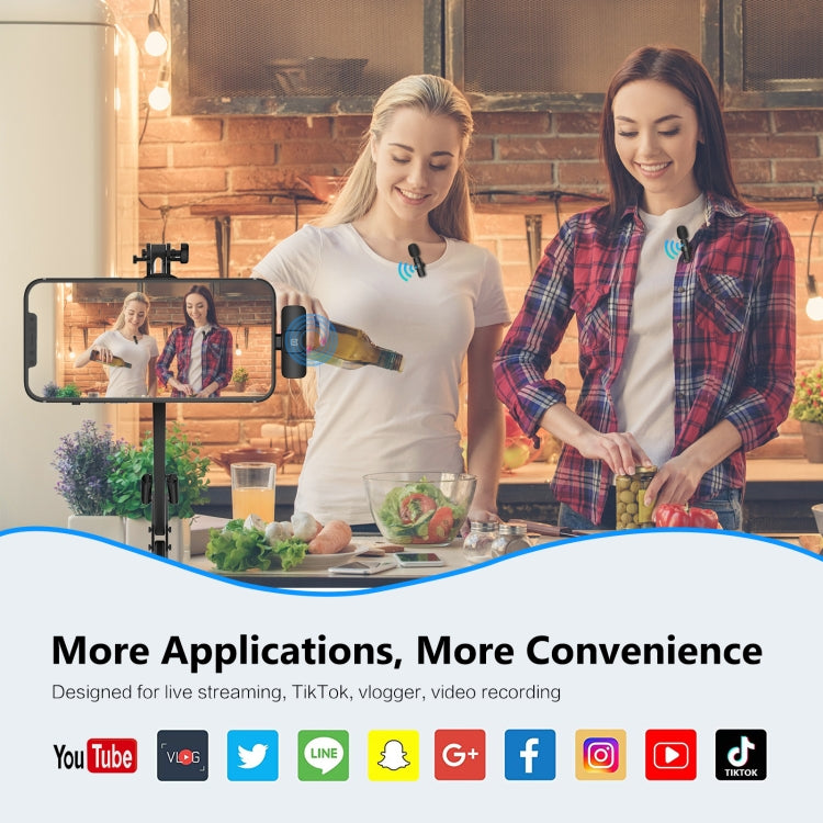 PULUZ Wireless Lavalier Noise Reduction Reverb Microphones for iPhone / iPad, 8-Pin Receiver and Dual Microphones(Black)