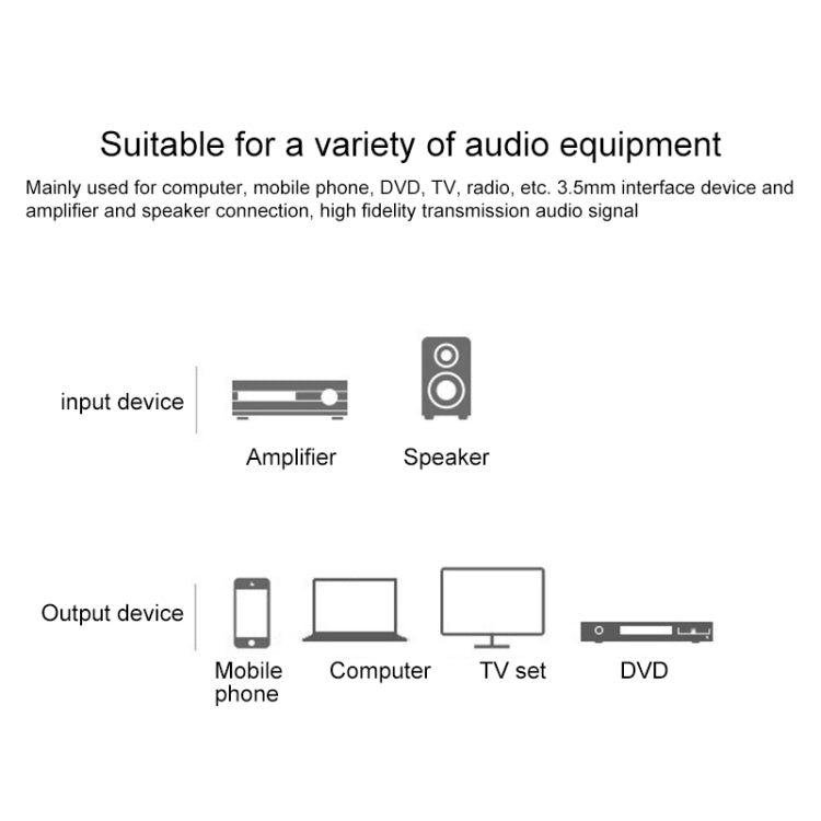 6. Utilisations : Convient aux téléphones portables, ordinateurs portables, MP3, MP4 et autres appareils connectés à des amplificateurs de puissance ou à des haut-parleurs actifs avec interface d'entrée RCA.