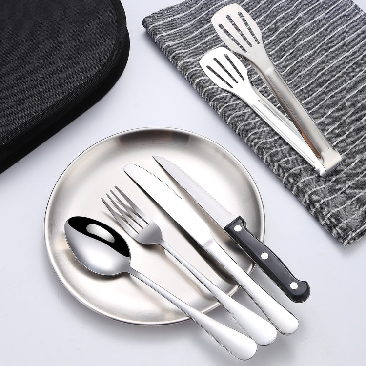 8. Set list: knife, fork and spoon x 2+steak knife+plate x 2+food clip+storage bag