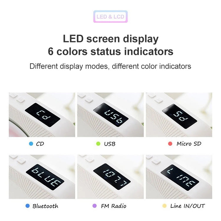 Lecteur CD Bluetooth portable à affichage numérique de deuxième génération avec télécommande (rose)