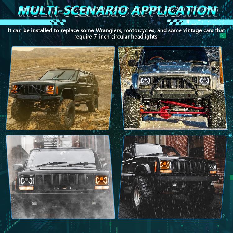 7. Suitable for any car with 5x7 inches (also known as 7x6), suitable for 86-95 Jeep Wrangler yj, 79-01 Cherokee XJ, Ford E series F series, C4 Corvette, GMC Savana, Dodge W250, etc. Some old Japanese brand cars require an additional relay kit (ASIN: B089M4DC45). Not only suitable for some old Wrangler pickups, but also suitable for various motorcycles with 7-inch square lights, as well as some classic cars, old sports cars, and double-jump lights. Please confirm the size of the installation hole of your car before purchasing.