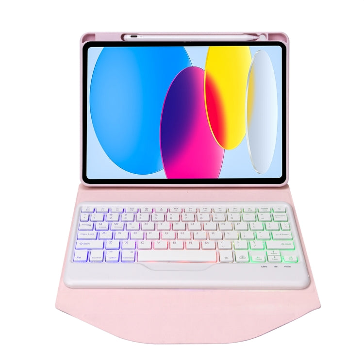Étui en cuir pour tablette avec clavier Bluetooth rétroéclairé et emplacement pour stylo Z10BS pour iPad 10e génération 10.9 2022 (rose)