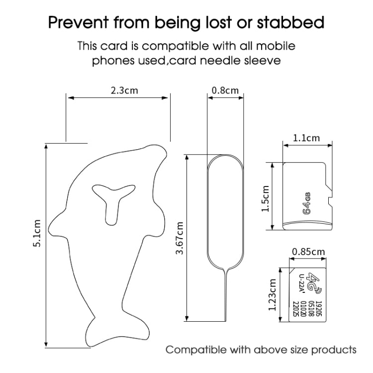 3pcs 2 in 1 Phone Tablet Card Removal Needle Dolphin Shape Card Opening Needle Cover(White)