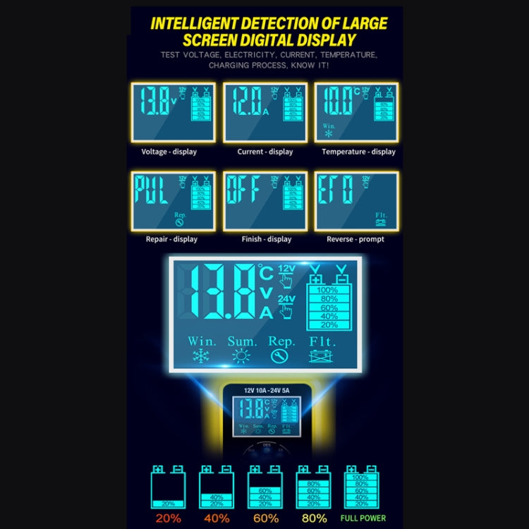 ANHTCzyx 12V/24V 6-180AH 7-Stage Smart Car Motorcycle Battery Charger(UK Plug)