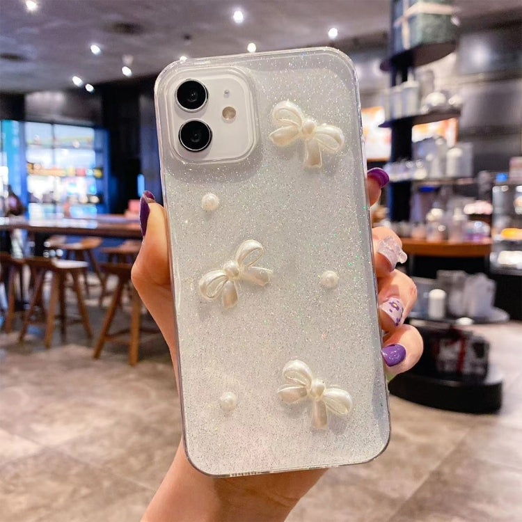 For iPhone 13 mini Pearl Bow Glitter Epoxy TPU Phone Case(Three Knots)