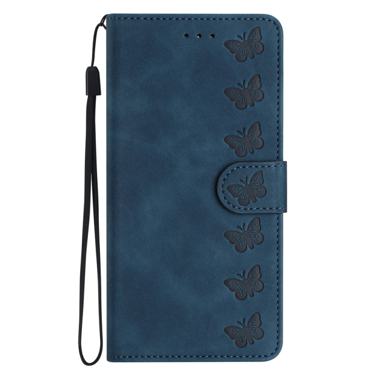 For iPhone 13 mini Seven Butterflies Embossed Leather Phone Case(Blue)