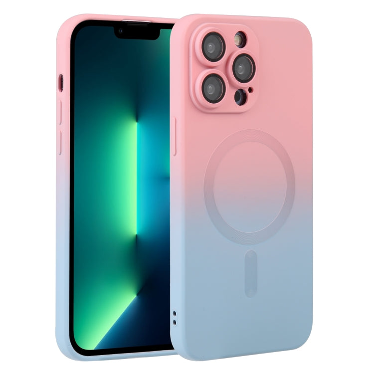 For iPhone 13 Pro Max Liquid TPU Silicone Gradient MagSafe Phone Case(Pink Blue)