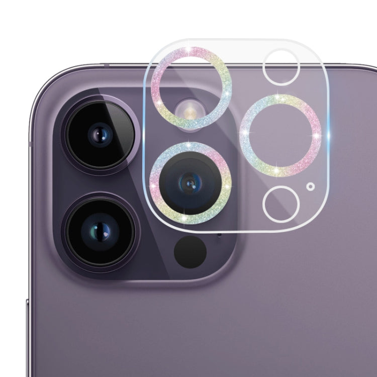 For iPhone 14 Pro Max / 14 Pro Tempered Glass Glitter CD Texture Back Camera Film(Colorful)