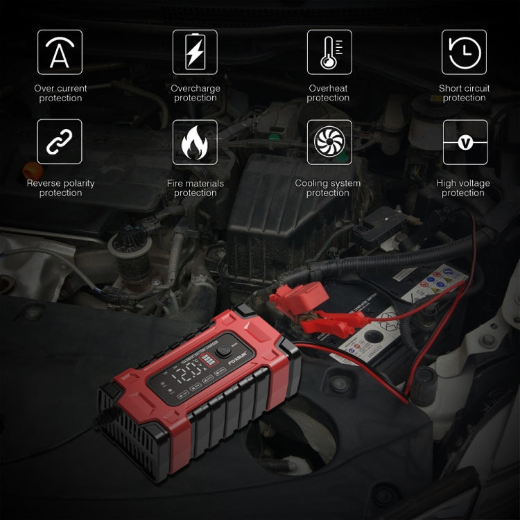 FOXSUR 12V / 24V / 10A Car / Motorcycle Battery Smart Repair Lead-acid Battery Charger, Plug Type:UK Plug