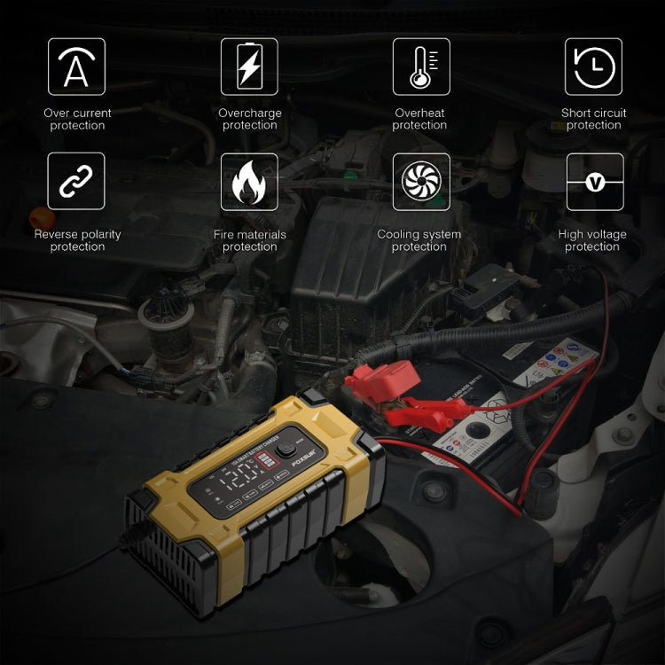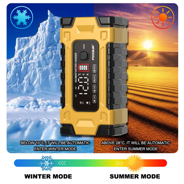FOXSUR 12V / 24V / 10A Car / Motorcycle Battery Smart Repair Lead-acid Battery Charger(AU Plug Yellow)