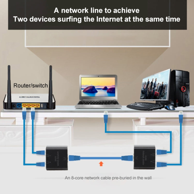 RJ45 to 2 x RJ45 Ethernet Network Coupler Thunder Lightning Protection (Black)