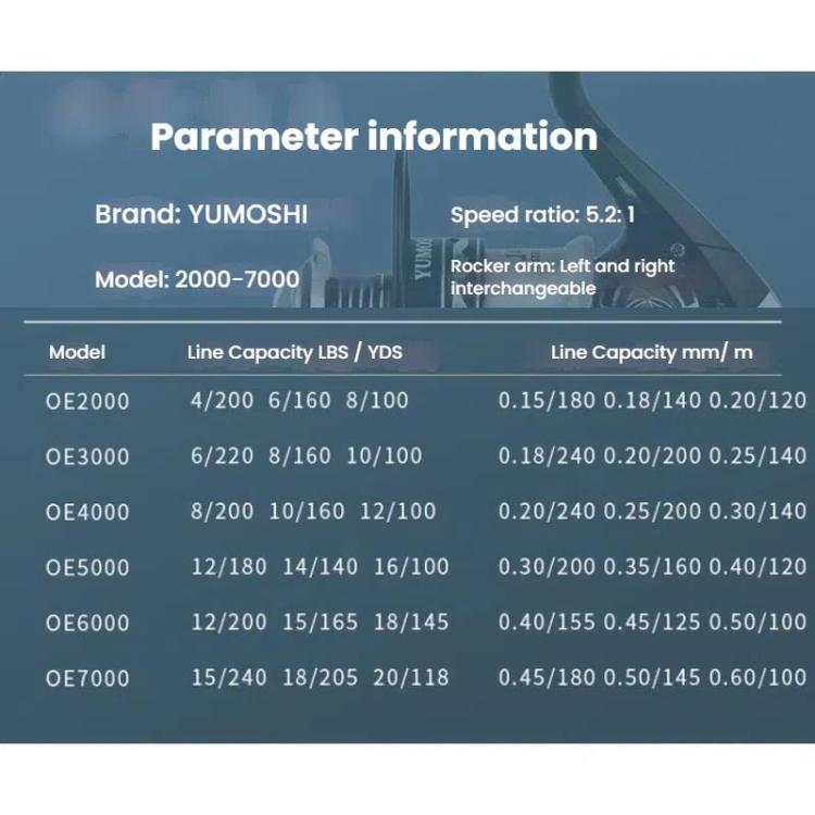 YUMOSHI OE6000 YUMOSHI Metal Spool Spinning Fishing Reel with 5.2:1 Gear Ratio, Foldable Handle & Wooden Grip